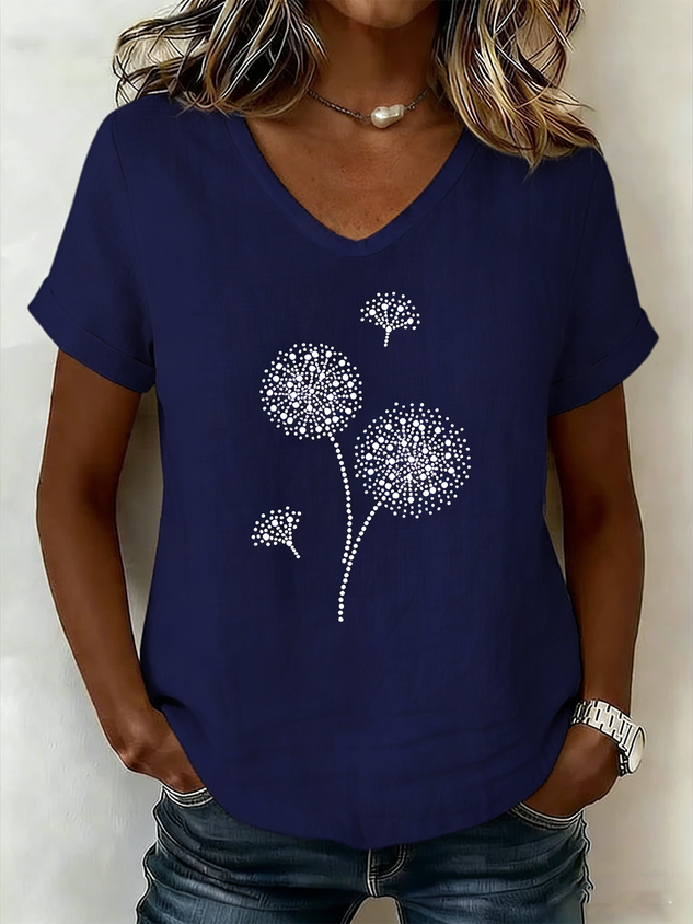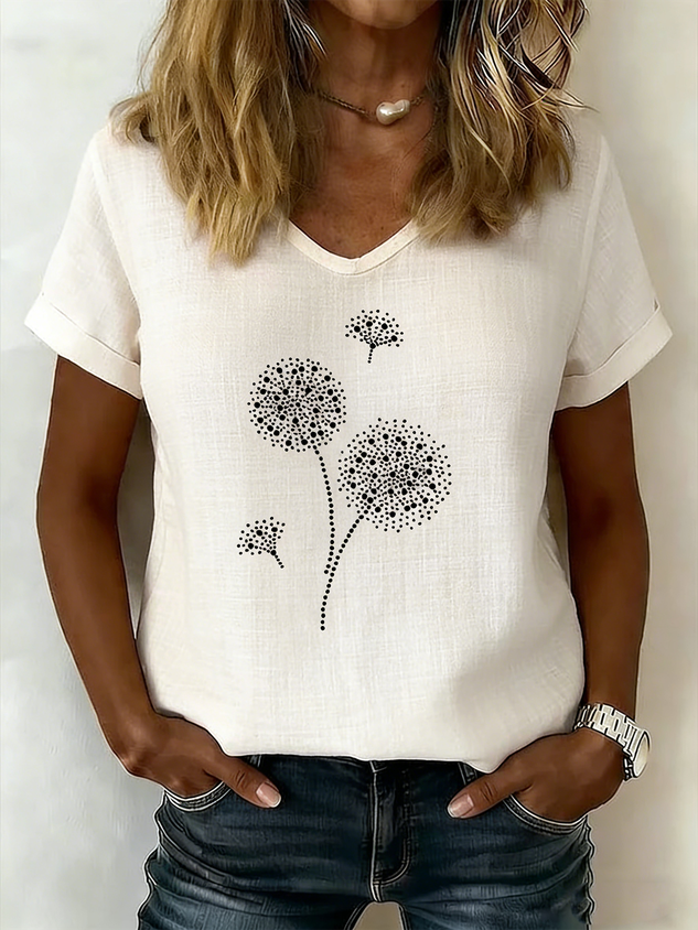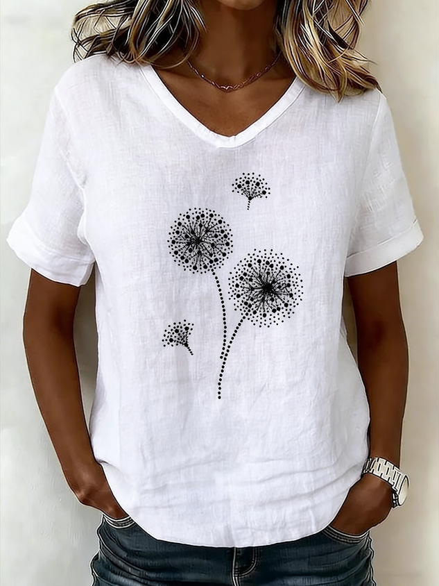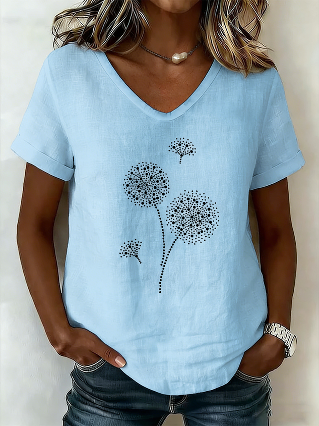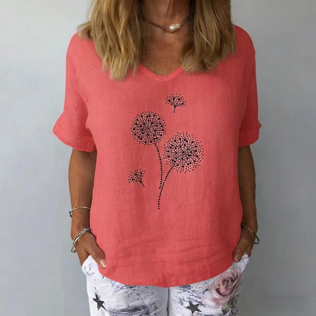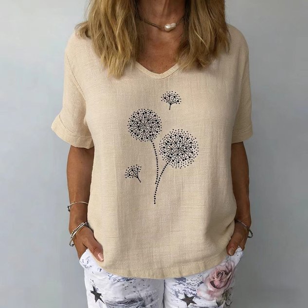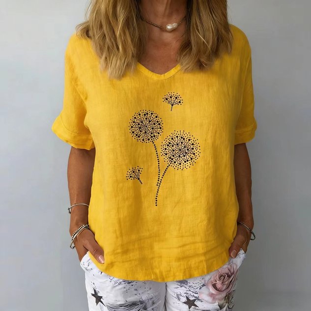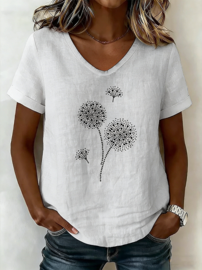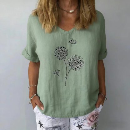 Women's V-Neck Short-Sleeve Blouse — Textured Linen