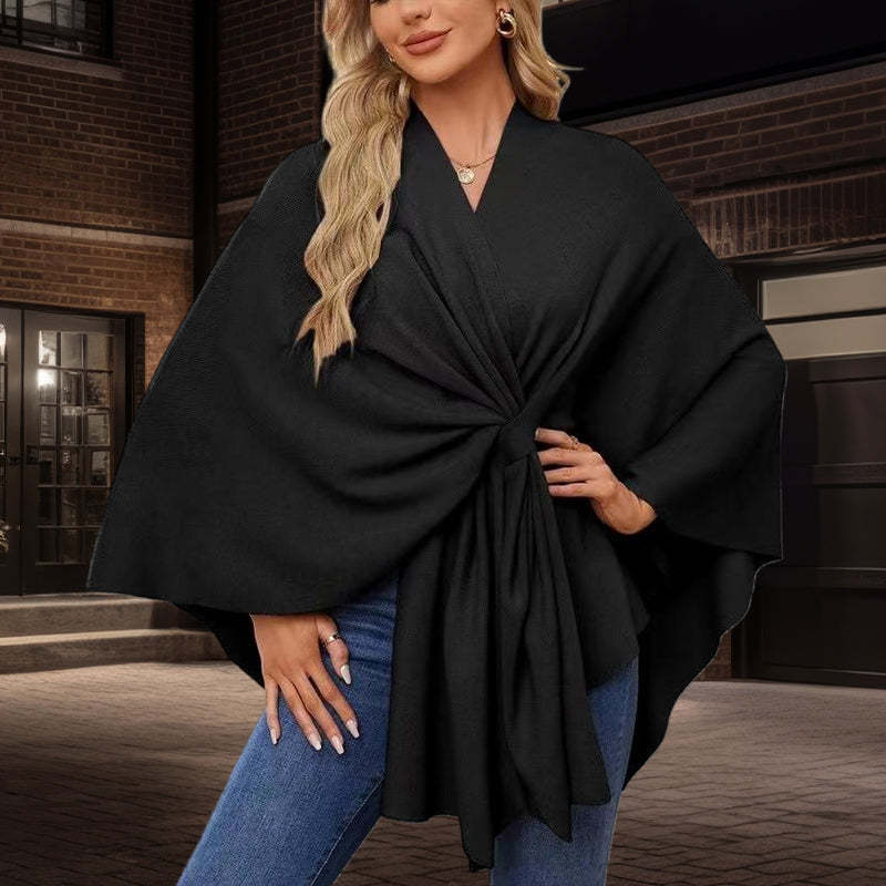CHIC CROSS FRONT DESIGN: This adds a touch of elegance to the classic cape silhouette. Its excellent drape enhances any outfit, allowing you to easily transition from casual outings to more formal occasions.