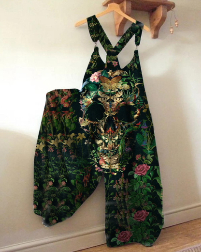 Women's Floral Skull Print Cotton + Polyester Jumpsuit