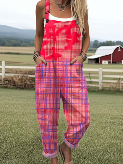 🔥Women's Vintage Abstract Geometric Art Print Casual Cotton + Polyester Wide Leg Jumpsuit