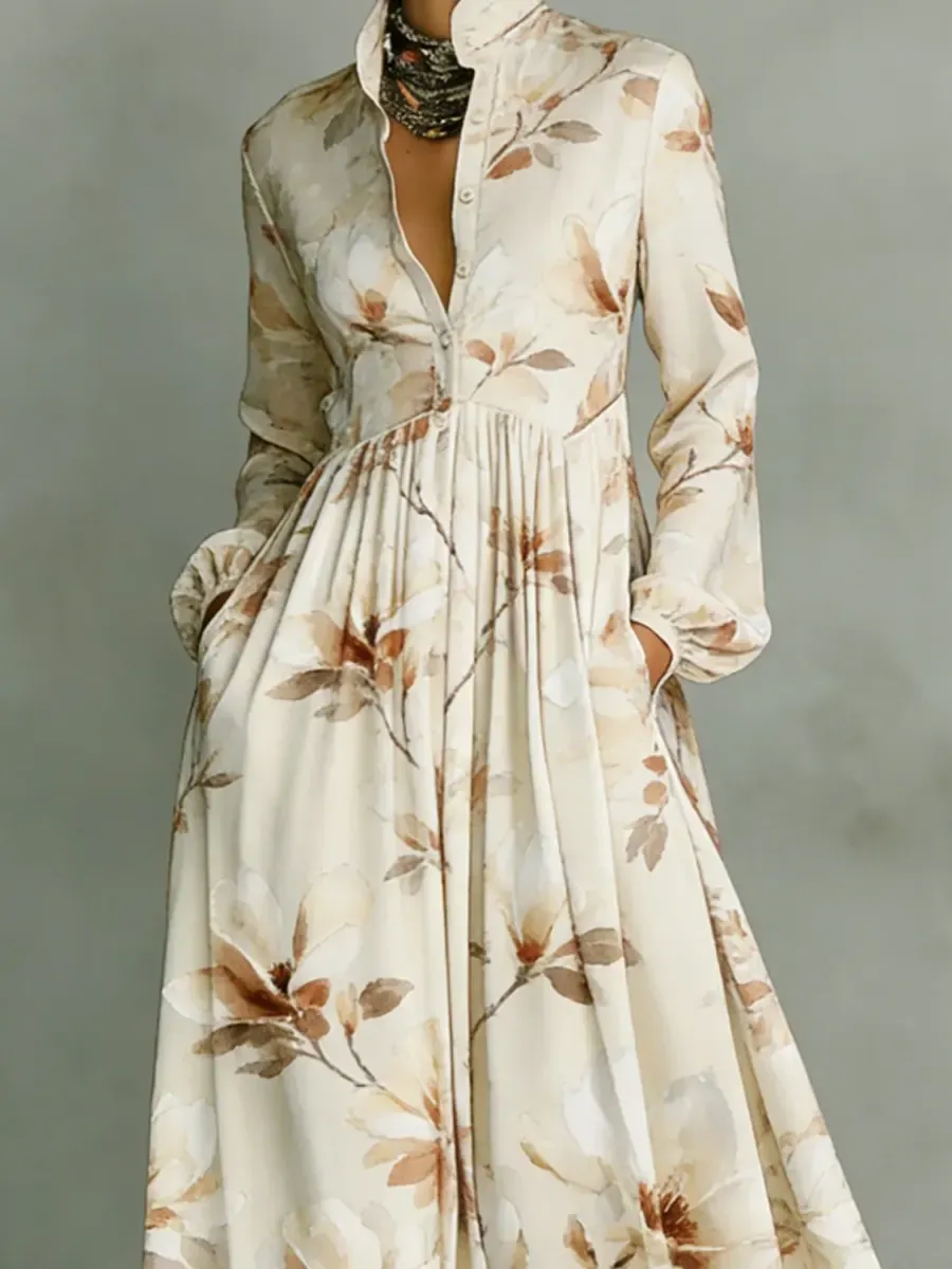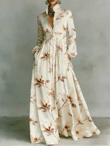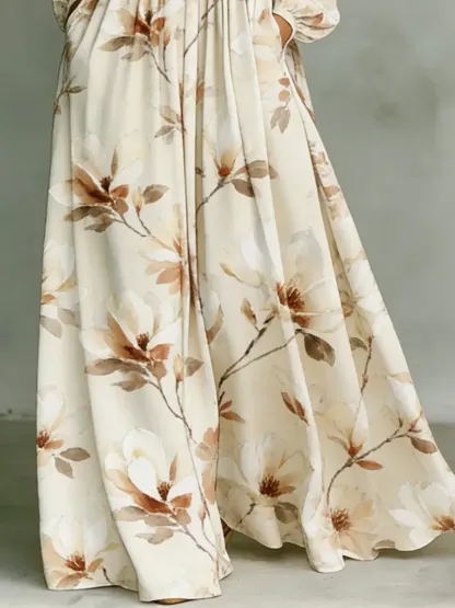 Women's Vintage Floral Art Elegant Romantic Casual Vacation Maxi Dress